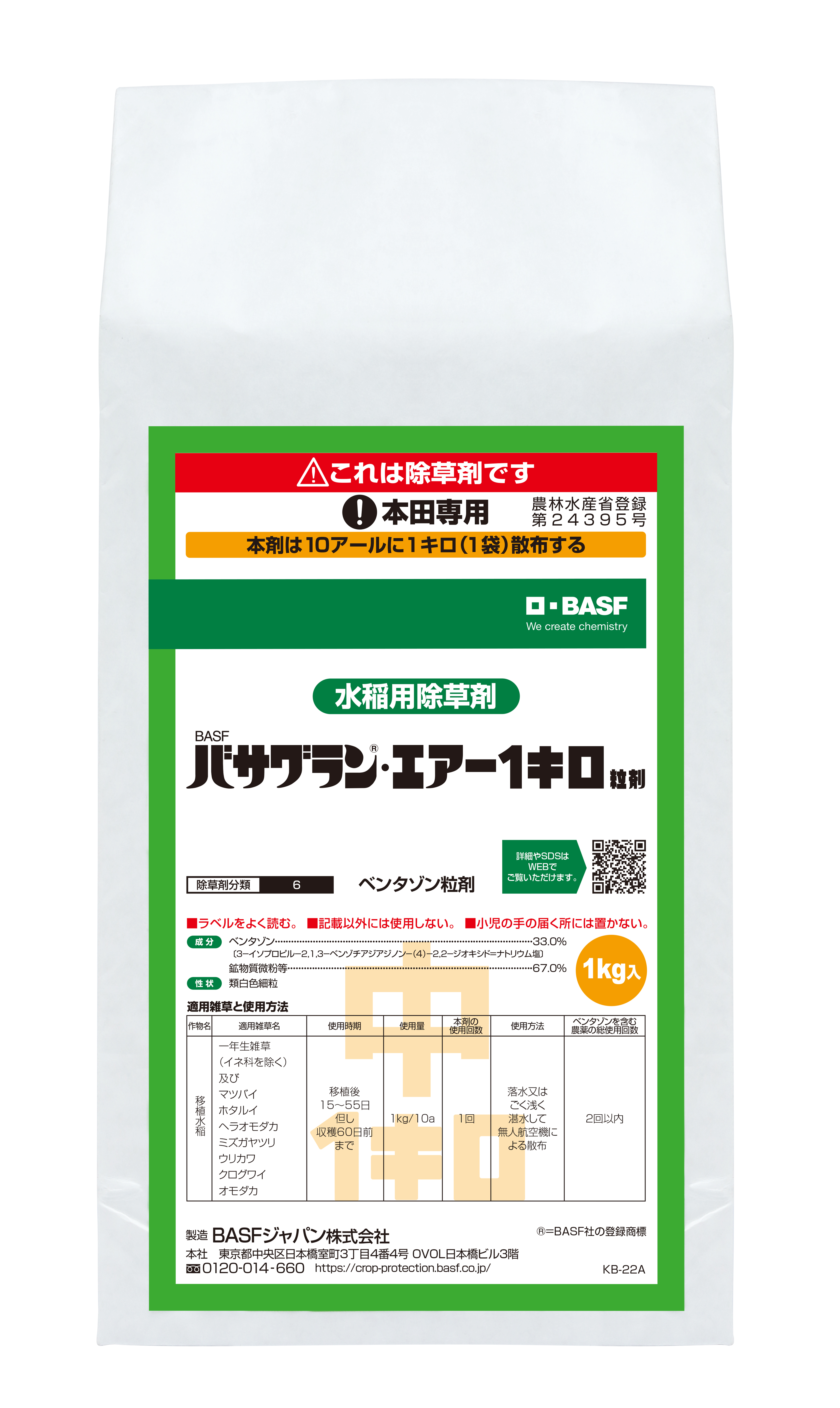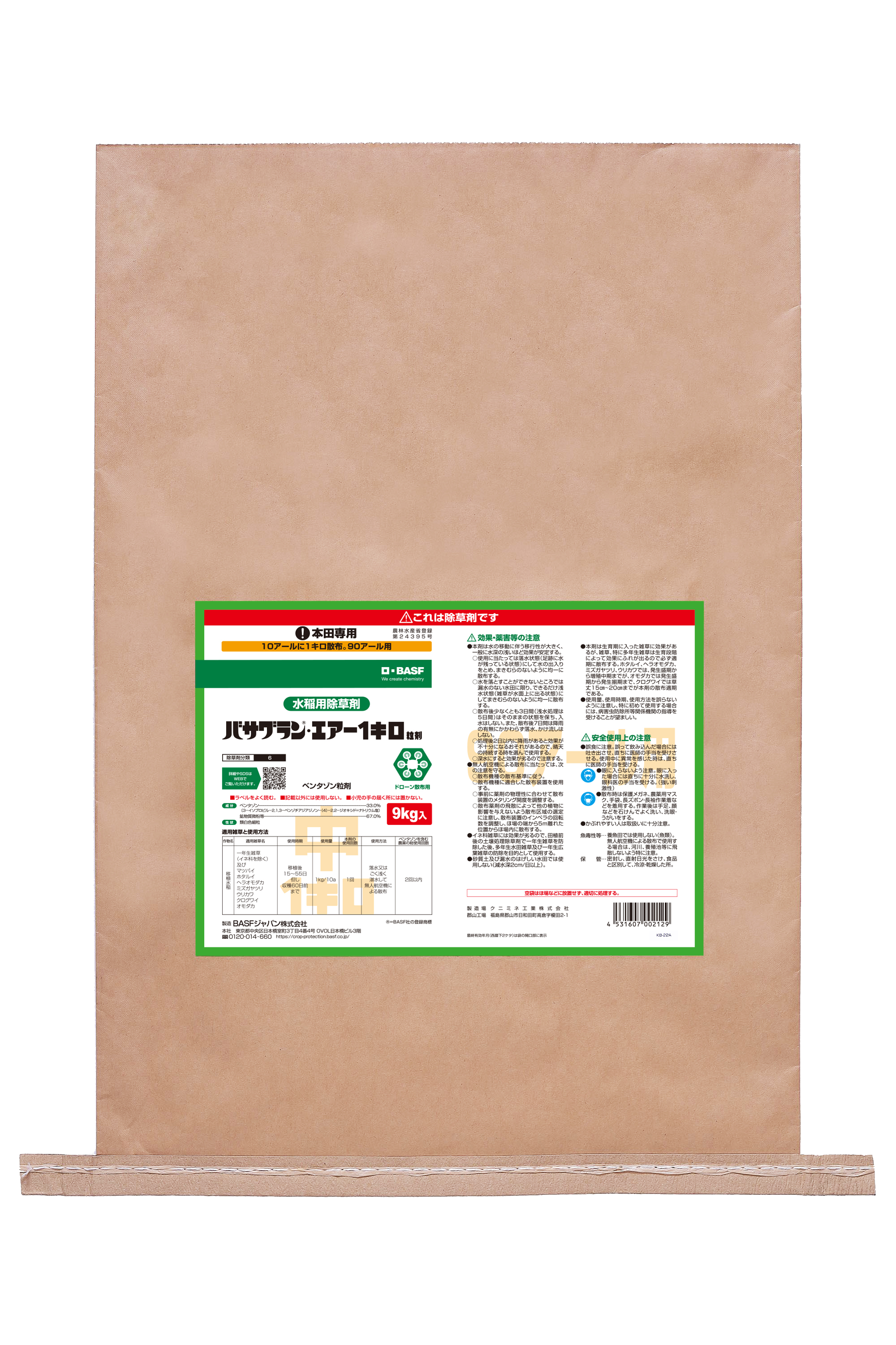 - バサグラン・エアー1キロ粒剤,9キロ規格